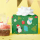 Façam o feriado dando especial com este adorável presente verde apresentando um padrão lúdico de Natal que as crianças vão amar! Decorado com ícones alegres como Snowman, Árvore de Natal, Pinguim e Chapéus de Santa, adiciona um toque festivo a cada presente. Perfeito para embrulhar presentes infantis com alegria e espírito de feriado.