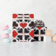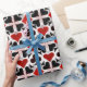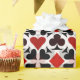 Conjunto de quatro ícones de traje de placa padrão preto e vermelho sem soldadura em fundo branco. Decorem seus presentes de Natal para quem gosta de jogos de cartas como pôquer, ponte ou blackjack com este papel de embrulho festivo que inclui padrões de cartas.