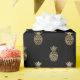 Este papel de embrulho apresenta um padrão de abacaxi de folha de ouro falso tropical sobre fundo preto.