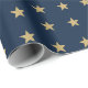 Papel De Presente Padrão Dourado de estrelas no Marinho azul