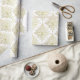 Papel De Presente Padrão Dourado de Flor de Lotus Branco Elegante