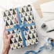 Se você está se perguntando que combinações de cores escolher para sua decoração de Natal e presentes este ano, eu criei coleções de padrões coordenadores para tornar a vida um pouco mais fácil. Esta design gráfica moderna de árvores de Natal minúsculas em um padrão geométrico é mostrada aqui em uma paleta de cores preto e dourado impressionante. Procure ID1009 para ver outros produtos e padrões neste esquema de cores.