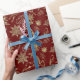 Papel De Presente Padrão Dourado dos símbolos de Natal vermelho escu