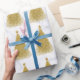 Papel De Presente Padrão Dourado e branco da árvore de Natal Elegant