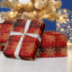 Papel De Presente Padrão Dourado e Xadrez de Floco de Neve