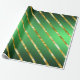 Papel De Presente Padrão Dourado Elegante de faixas diagonais verdes