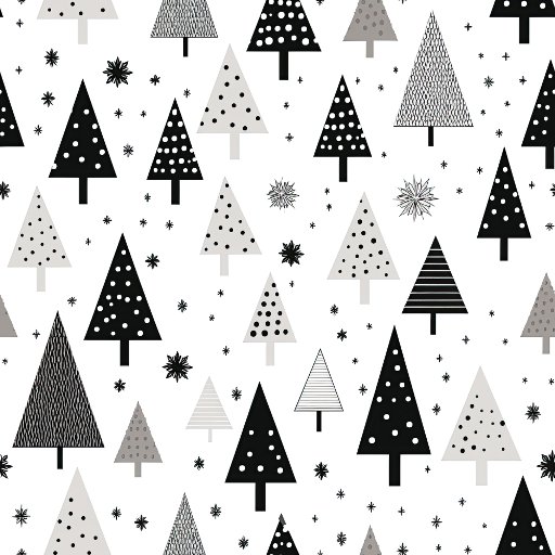 Papel De Presente Padrão Elegante de Árvore de Natal Preta e Branca