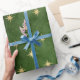 Papel De Presente Padrão elegante de estrelas de Natal verde e doura