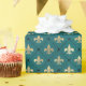 Belo brilho dourado brilhante, estilo medieval, fleur de lis, papel de enrolamento com padrão em fundo de terra profundo. Adicione elegância e classe à sua apresentação de presente. Adequado para todas as ocasiões.