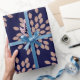 Papel De Presente Padrão Faux Rosa Dourado e Marinho Blue Floral