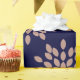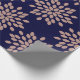 Papel de embrulho floral de rosa falsa e azul marinho. O design apresenta um motivo floral rosa dourado sobre um fundo azul marinho.
