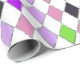 Diversão do padrão sem costura de diamante em roxo, rosa, verde com falso limite de cintilação prateada em fundo branco, para as festividades de outono de outubro / novembro, embrulhamento de presentes de férias, aniversário, chá de fraldas ou qualquer outra ocasião.