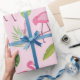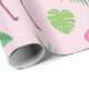 Papel De Presente Padrão Flamingo rosa com folhas tropicais