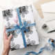 Papel De Presente Padrão Floral Branco e Preto Inicial do Monograma
