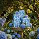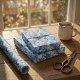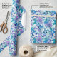 Papel De Presente Padrão Floral de Aquarela Vibrante em Azul e Teal