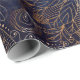 Papel De Presente Padrão Floral de Mandala Azul Escuro e Dourado ele