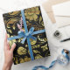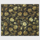 Papel De Presente Padrão Floral Elegante Dourado e Preto
