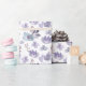 Melhore qualquer presente com nosso papel de embrulho de design floral moderno, adicionando um toque especial aos seus presentes. Este lindo papel de embrulho boho apresenta flores elegantes em aquarela em um fundo branco imaculado. O padrão repetitivo em tons de roxo e azul é perfeito para casamentos, chá de noiva, aniversários e mais. Eleve o seu presente com este papel de embrulho elegante e versátil, ideal para qualquer ocasião especial.