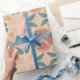 Papel De Presente Padrão geométrico com estrelas laranja e rosa