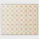 Padrão geométrico contínuo com intrincadas estrelas de oito pontas em uma tonalidade dourada sobre um fundo branco. O design transmite elegância e simetria.
