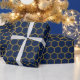 Papel De Presente Padrão Geométrico do Hexágono Azul e Dourado do ma