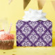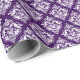 Damascos florais brancos e roxos elegantes, com padrão geométrico uniforme.