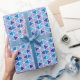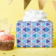 Enrole seu presente neste papel embrulhado coberto por este padrão de triângulos azuis vívidos correndo em um ângulo leve. Este documento também é excelente para projetos de artesanato. Um design colorido de triângulos em azul legal e vívido. Um padrão otimista para todos com um personagem ensolarado e feliz.
