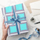 Padrão geométrico minimalista com quadrados turquesas. Design simples e elegante para empacotar seu presente especial
