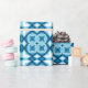 Papel de enrolamento em quatro vias, moderno do século Médio, padrão geométrico de azulejos em tons de azul-denim claro a escuro e de branco