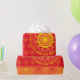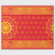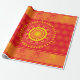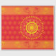 Design de ornamento de rendas indígenas com elefante e formas redondas decoração sobre fundo vermelho
