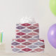 Este papel de embrulho tem um design moderno século médio de diamantes achatados em tons retrorados de roxo e rosa.