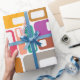 Este papel de embrulho tem uma design moderna do século médio de retângulos com um buraco branco em cores retrorreflectoras.