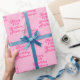 Papel De Presente Padrão Moderno Rosa do Nome da Parte do aniversári