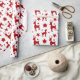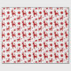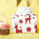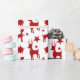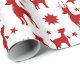 Papel de enrolamento com um padrão ilustrado, silhuetas vermelhas com renas adultas e jovens, com estrelas ouros no fundo, fornecimento perfeito para a sua época natalícia