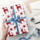 Papel De Presente Padrão natalício com renas e estrelas embrulhando