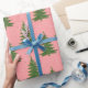 Um padrão perfeito com uma árvore de Natal retrô. Padrões festivos de inverno com fundo cor-de-rosa para embalagem de papel ou têxteis.