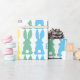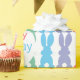 Meninas Feliz Aniversário do Rainbow Bunny Pattern Personalizado com o Nome e a Idade do Papel de Aniversário. Fundo branco com silhuetas de coelho vermelho, laranja, amarelo, verde, azul e roxo com caudas brancas lisas. O círculo branco central mostra a idade em amarelo claro no centro. Happy está escrito em vermelho, Aniversário em azul com nome personalizado em roxo claro. Diversão personalizada de comida para animais para crianças, adolescentes e adolescentes. Um padrão de coelho coelho colorido e colorido.