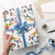 Feliz papel de embrulho de Natal com um cavalo Rocking engraçado. Design de Feriado Bonito para meninos. Personalizável com nome personalizado e saudação.