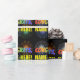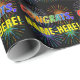 Este design de papel de empacotamento de parabéns de de de de de diversão apresenta a mensagem "CONGRATOS" com as letras que têm um visual de gradiente inspirado no espectro do arco-íris, juntamente com um nome personalizável, e um padrão de fogo de artifício colorido inspirado em um fundo escuro. Esfregar papel como este pode ser uma maneira divertida de embrulhar um presente de parabéns a alguém que fez algo importante.