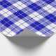 Um papel de embrulho projetado com um padrão real de xadrez azul e branco em tamanho grande. Personalize o fundo branco entre outras opções.