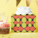 Este papel de embrulho de presente apresenta um padrão de pétala ou lágrima de abstrato floral em cores retrorcontemporâneas de laranja vívida e verde que é baseado em modos modernos de Meio século semelhantes nos anos 50, 1960 e até no início dos anos 70.