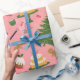 Um padrão perfeito com bolo de doces de Natal e pão de gengibre. Padrões festivos de inverno com árvore de Natal sobre fundo cor-de-rosa para embrulhar papel ou têxteis.