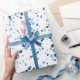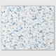 Este papel colorido de embrulho apresenta um padrão terrazzo azul e cinza em um fundo branco. Personalize as cores clicando em Editar design.