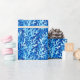 Papel de enrolamento num padrão de frentes estilizadas e inspiradas nas algas marinhas em tons de azul gelado, graciosamente entrelaçados contra um fundo rico de cobalto, para um design dinâmico, com tema marinho