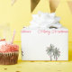 Palha Tropical Praia Feliz Papel de embrulho de Natal, com um padrão de ilustração de palmeiras e tipografia vermelha de guião. Com a inscrição personalizável, você adiciona suas próprias informações. Uma adição festiva aos presentes de destino de férias.