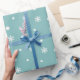 Papel De Presente Padrão Turquesa e Flocos de Neve de Natal Branco