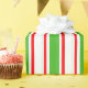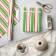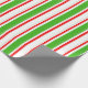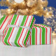 Este design de estilo natalino apresenta um padrão de listras vermelho, branco e verde. Pode ser divertido usar papel de embrulho como este ao embrulhar presentes sendo dados em comemoração de um aniversário, casamento, aniversário ou qualquer outro evento.