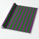 Este design de papel de embalagem apresenta um padrão de listras com cores como verde escuro e roxo. Esfregar papel como este pode ser divertido de usar na preparação de presentes ou presentes para celebrar um aniversário, um casamento, um aniversário ou outro evento.
