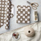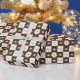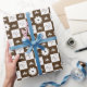 Veja esse papel de embrulho de padrão branco e marrom-na moda, perfeito para embrulhar esse presente especial para seus entes queridos. Apresenta flores de lis, de vetor cardíaco, e o logotipo do designer
