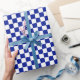 Papel De Presente Padrão Verificado Real Azul e Branco